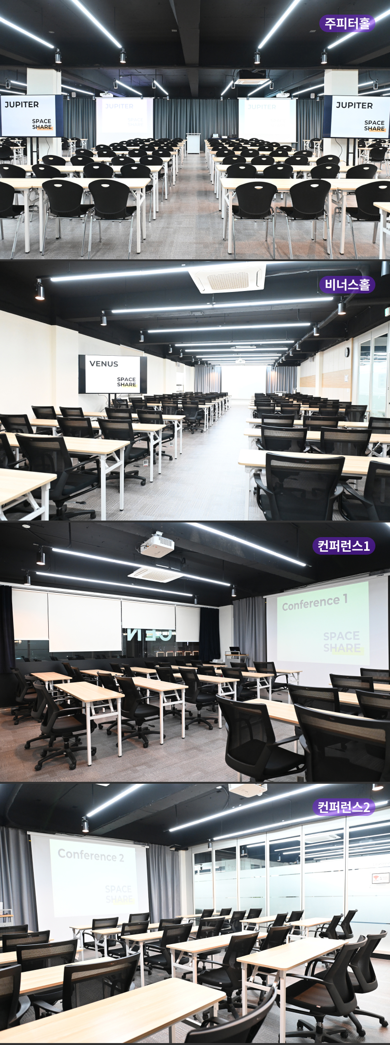 | 제공설비 | 최고급 빔프로젝트, 3M 스크린, 이동형 음향장비, 퍼시스 고급의자 |