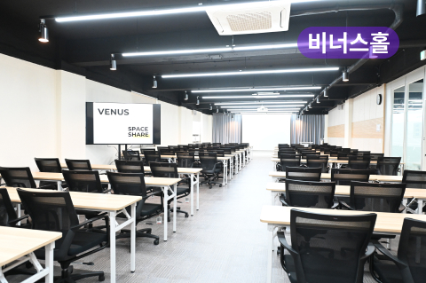 | 제공설비 | 최고급 빔프로젝트, 4M 스크린, 75인치 티비 2대, 음향장비(벽면스피커,무선마이크), 퍼시스 고급의자 |